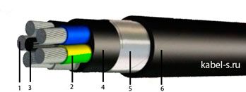 • многожильные кабели (2, 3, 4, 5) имеют сечение жил от 10 до 240 кв.мм;